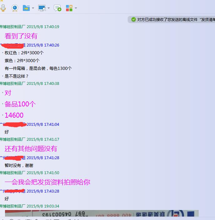 昨天,在阿里旺旺上面接到一個(gè)客戶,根據(jù)她提供的信息,找的是一款當(dāng)下比較暢銷的硅膠制品,這款產(chǎn)品是我們公司的現(xiàn)有模具,因?yàn)楫a(chǎn)品的特殊性,要求提供樣品。 我核對客戶信息資料后,我答應(yīng)給他免費(fèi)寄一些現(xiàn)有的實(shí)物樣品,運(yùn)費(fèi)是到付的那種。客戶那邊也同意了運(yùn)費(fèi)到付,這樣,我給客戶寄過去一些類似的樣品。