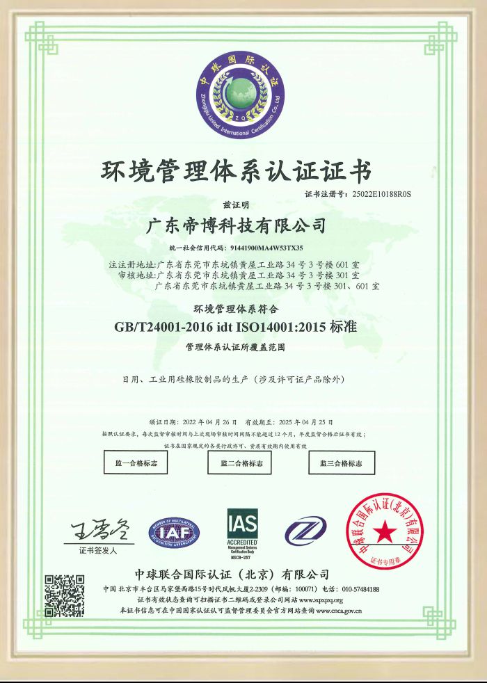 廣東帝博科技有限公位于2019年起施行每年檢測認證報告,由于硅膠制品行業屬于環保安全行業,客戶的需求以及反饋都決定我們的實力,目前我司已認證ISO9001、ISO14001、ISO45001、迪士尼認證、FDA、ROHS、LFGB、CPC等一系列檢測認證